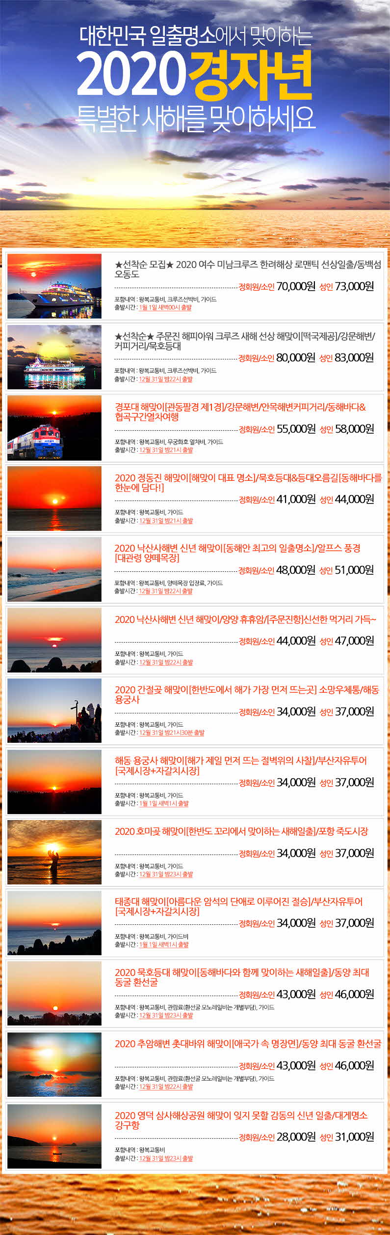 ★2020 경자년 신년 해맞이여행★ 대한민국 해맞이 명소에서 새해소원 빌어보세요~