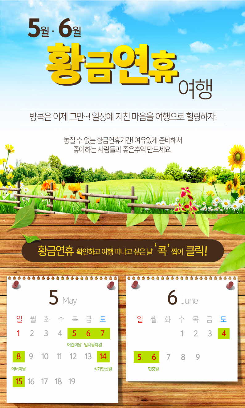★5월 · 6월 황금연휴 여행★ 방콕은 NONO~ 여행으로 Refresh time!