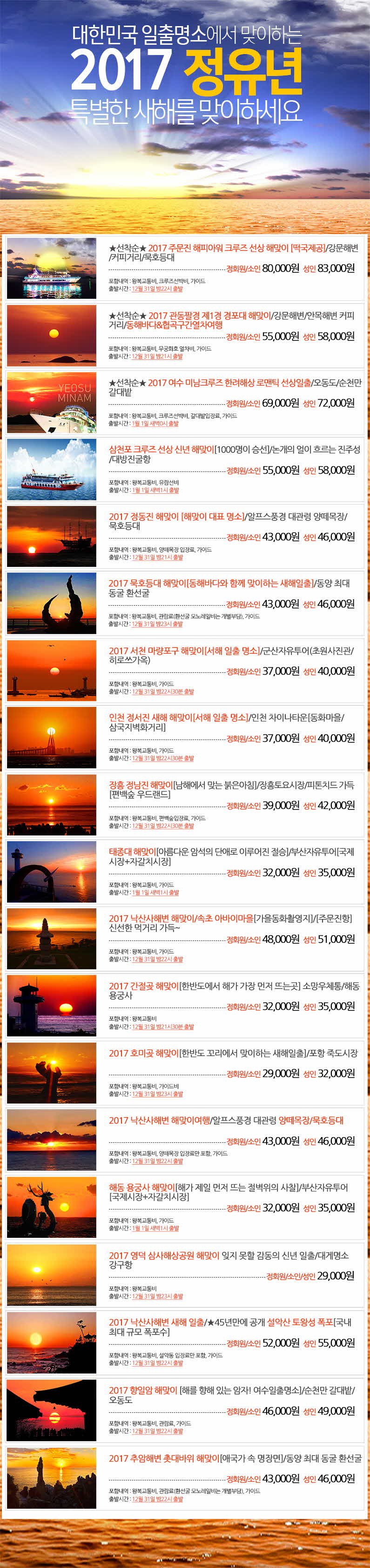 ★2017 정유년 신년 해맞이여행★ 대한민국 해맞이 명소에서 새해소원 빌어보세요~