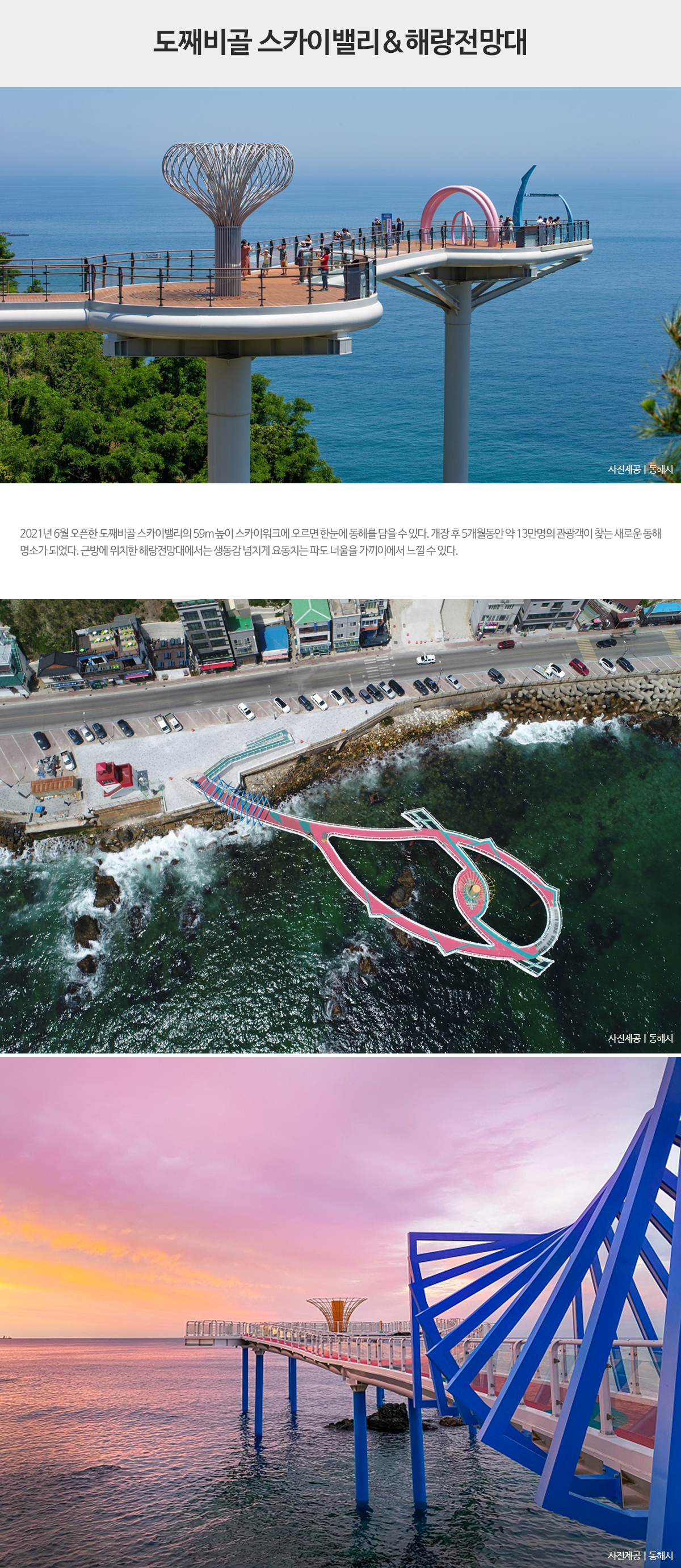 - 옥빛 동해로 뻗어나가 넘실대는 파도 위의 스카이워크를 걸어보세요.