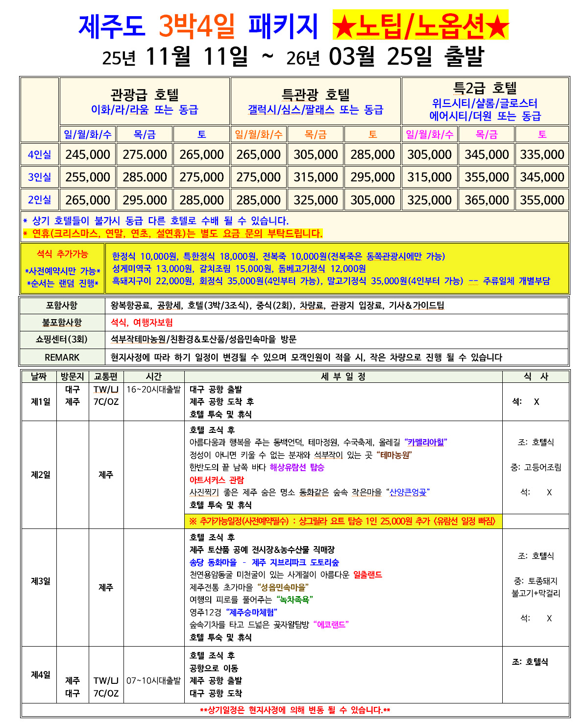 ★특가★ 제주도 3박4일 패키지 [대구오후출발/제주오전출발]