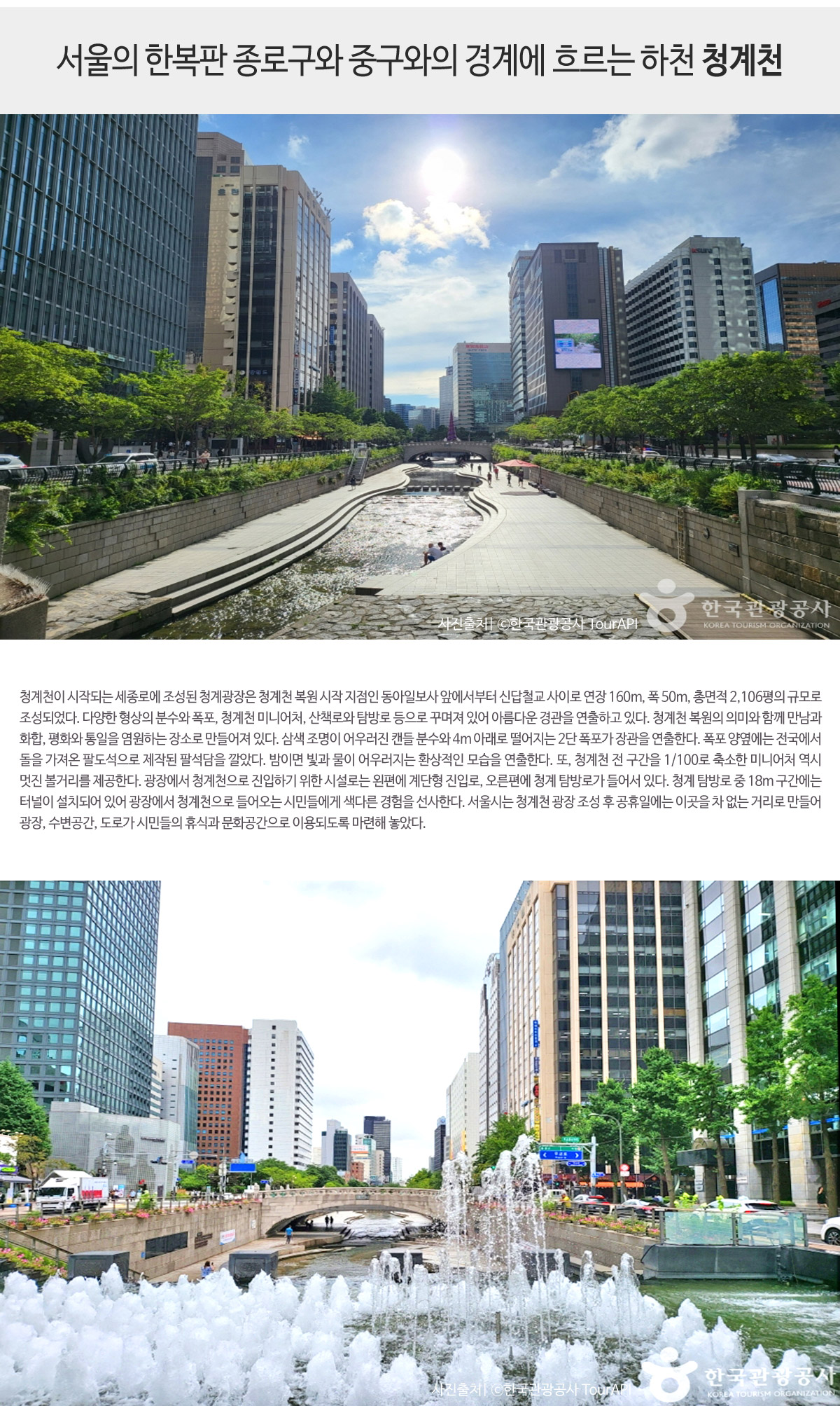 - 서울의 한복판 종로구와 중구와의 경계에 흐르는 하천