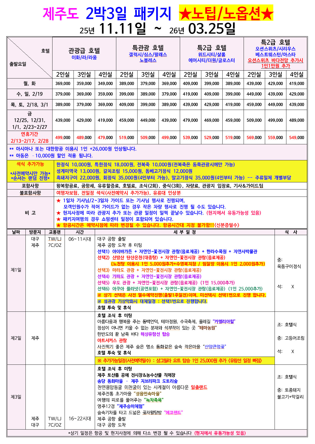 제주도 2박3일 섬투어포함[마라도or가파도] 패키지 노팁/노옵션